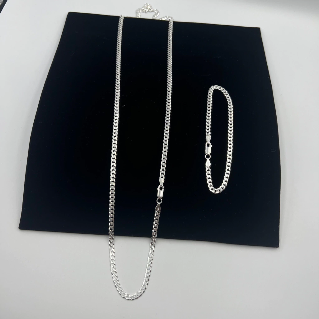 Kit Corrente e Pulseira 4mm Modelo Grumet, Escamada ou 1x1