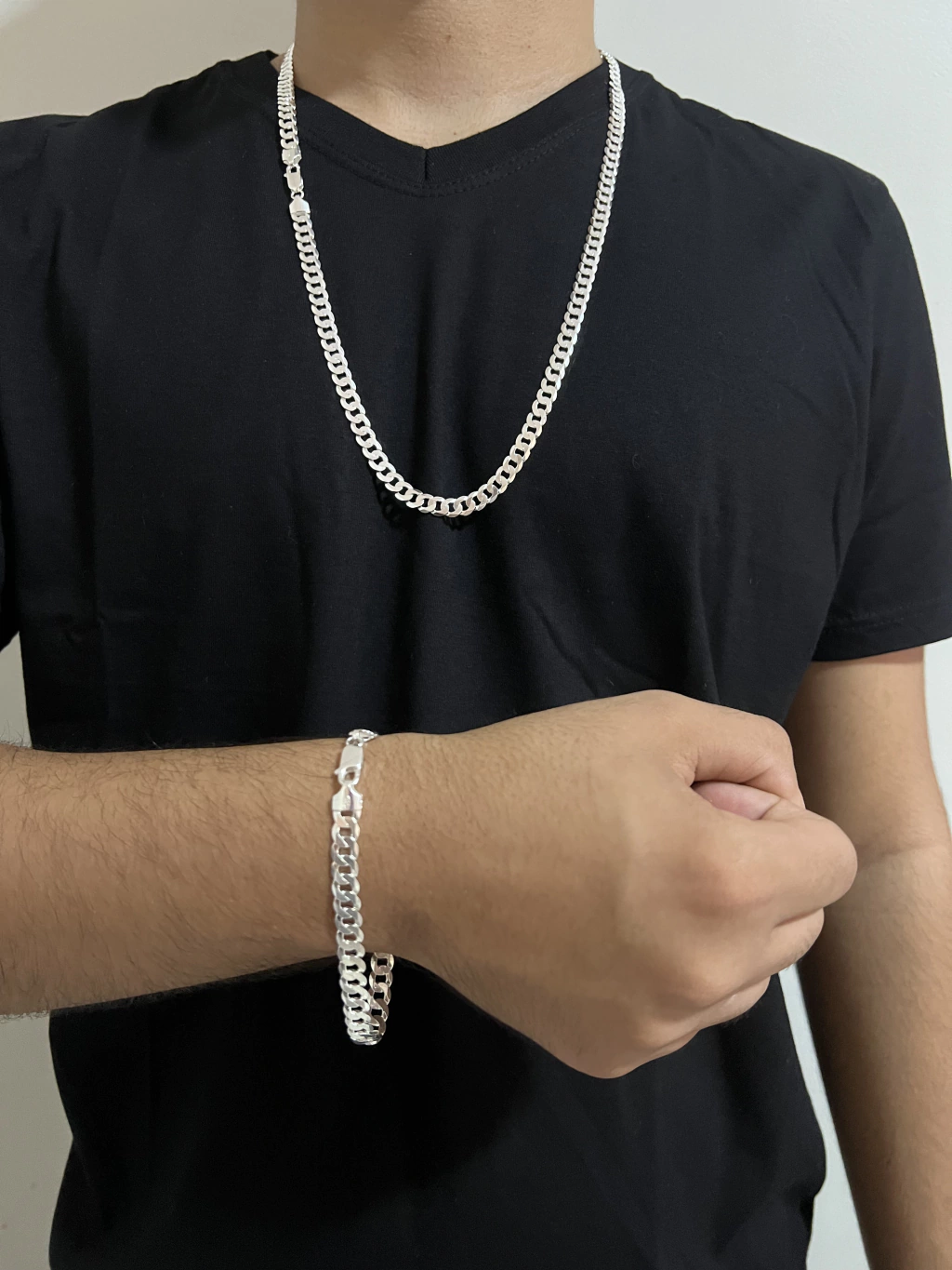 Kit Corrente e Pulseira 7mm de expessura Modelo Grumet, Escamada ou 1x1