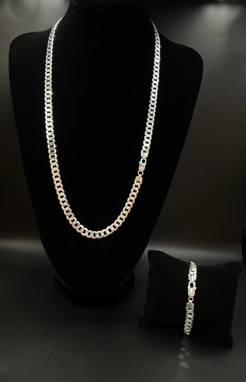Kit Corrente e Pulseira 8mm de expessura Modelo Grumet, Escamada ou 1x1
