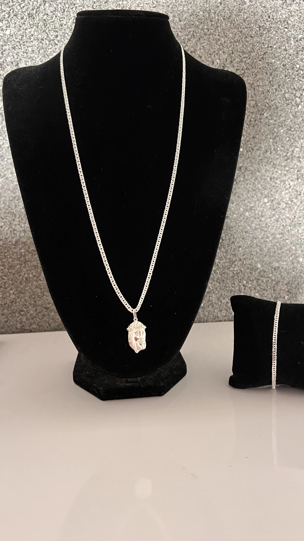Kit Corrente 3mm Modelo Grumet elo duplo + Pulseira + Pingente face de cristo