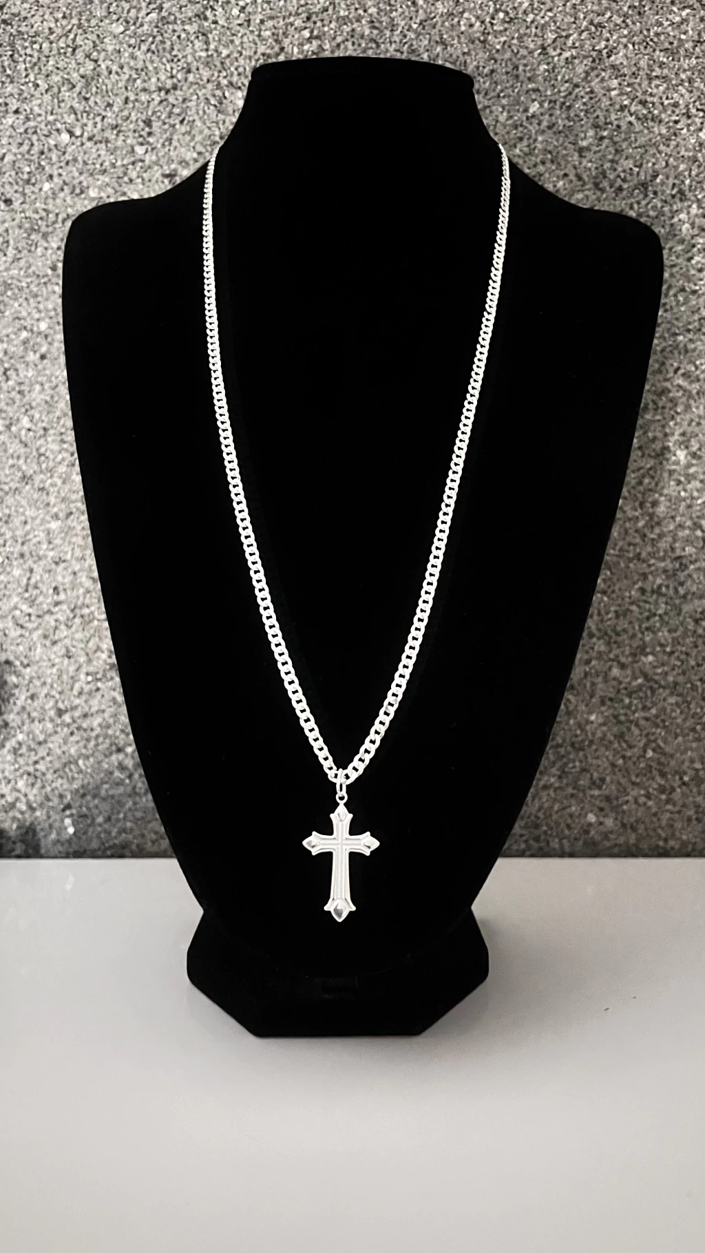 Kit Corrente 4mm Modelo Grumet, Escamada ou 1x1 + Pingente cruz