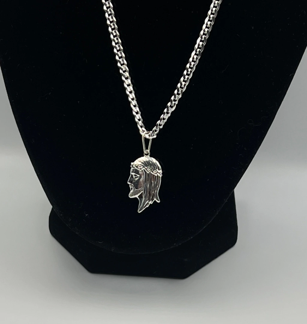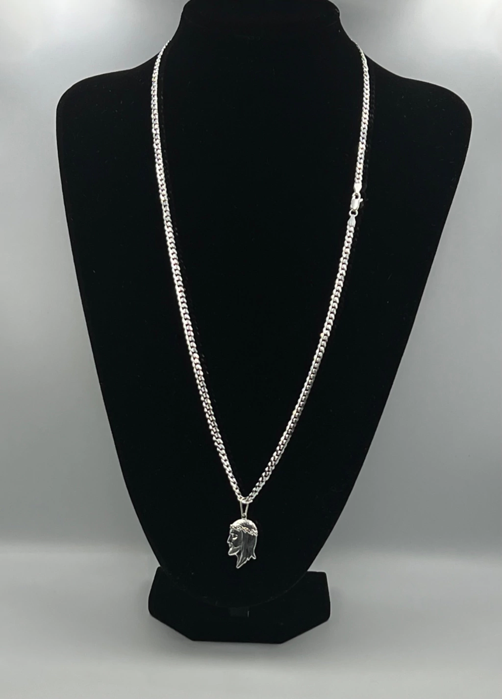 Kit Corrente 4mm Modelo Grumet, Escamada ou 1x1 + Pingente Face de Cristo